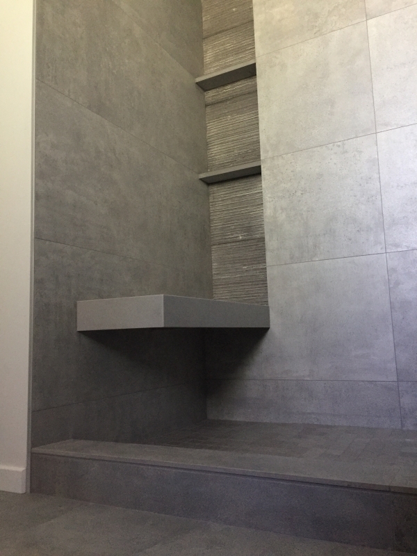 Porcelain shower with a stealth bench